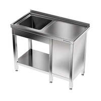 Nerezový stôl s jednokomorovým drezom a skrinkou 180x60x85 cm | FORGAST