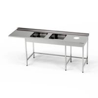 Nerezový stôl s drezom s 2 miskami, priestorom na umývanie riadu a otvorom na odpad 220x70x85 cm | FORGAST