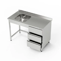 Nerezový stôl s umývadlom s 1 miskou a 3-zásuvkovým blokom 230x70x85 cm | FORGAST