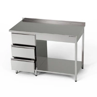 Pracovný stôl z nehrdzavejúcej ocele s 2 blokmi s 3 zásuvkami a policou 140x70x85 cm | FORGAST