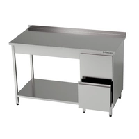 Pracovný stôl z nehrdzavejúcej ocele so skrinkou a zásuvkovým blokom 150x60x85 cm | FORGAST