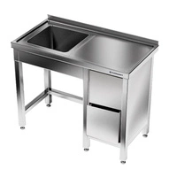 Nerezový stôl s umývadlom s 1 miskou a blokom zásuviek 110x70x85 cm | FORGAST