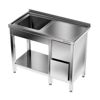 Nerezový stôl s umývadlom s 1 miskou a zásuvkovým blokom 200x60x85 cm | FORGAST