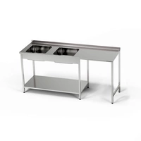 Nerezový stôl s drezom s 2 miskami, priestorom na umývanie riadu a otvorom na odpad 220x70x85 cm | FORGAST
