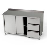 Pracovný stôl z nehrdzavejúcej ocele so skrinkou a 3-zásuvkovým blokom 220x70x85 cm | FORGAST