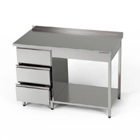 Pracovný stôl z nehrdzavejúcej ocele s blokom zásuviek a policou 130x60x85 cm | FORGAST