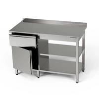 Pracovný stôl z nehrdzavejúcej ocele so skrinkou, zásuvkou a 2 policami 120x60x85 cm | FORGAST