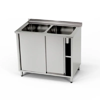 Nerezový stôl s dvojdrezom a skrinkou 110x60x85 cm | FORGAST