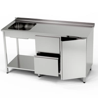 Nerezový stôl s umývadlom s 1 miskou, blokom skriniek a zásuviek a policou 190x70x85 cm | FORGAST