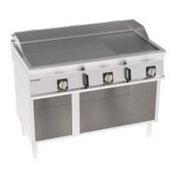 Elektrická grilovacia doska, 2/3 hladká, 1/3 vlnitá, chrómovaná, kartáčovaná, na otvorenom podstavci, 120 cm, 400 V Tecno74 | TECNOINOX 716210