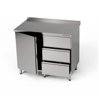 Pracovný stôl z nehrdzavejúcej ocele so skrinkou a 3-zásuvkovým blokom 80x60x85 cm | FORGAST