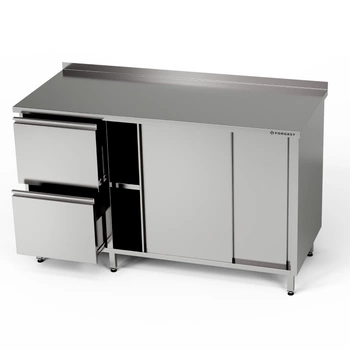 Pracovný stôl z nehrdzavejúcej ocele so skrinkou a zásuvkovým blokom 250x70x85 cm | FORGAST