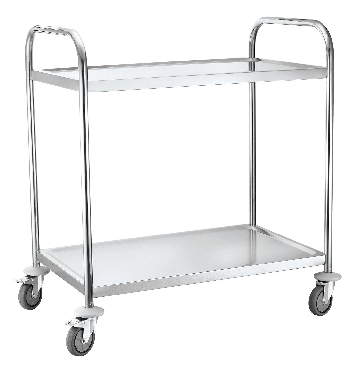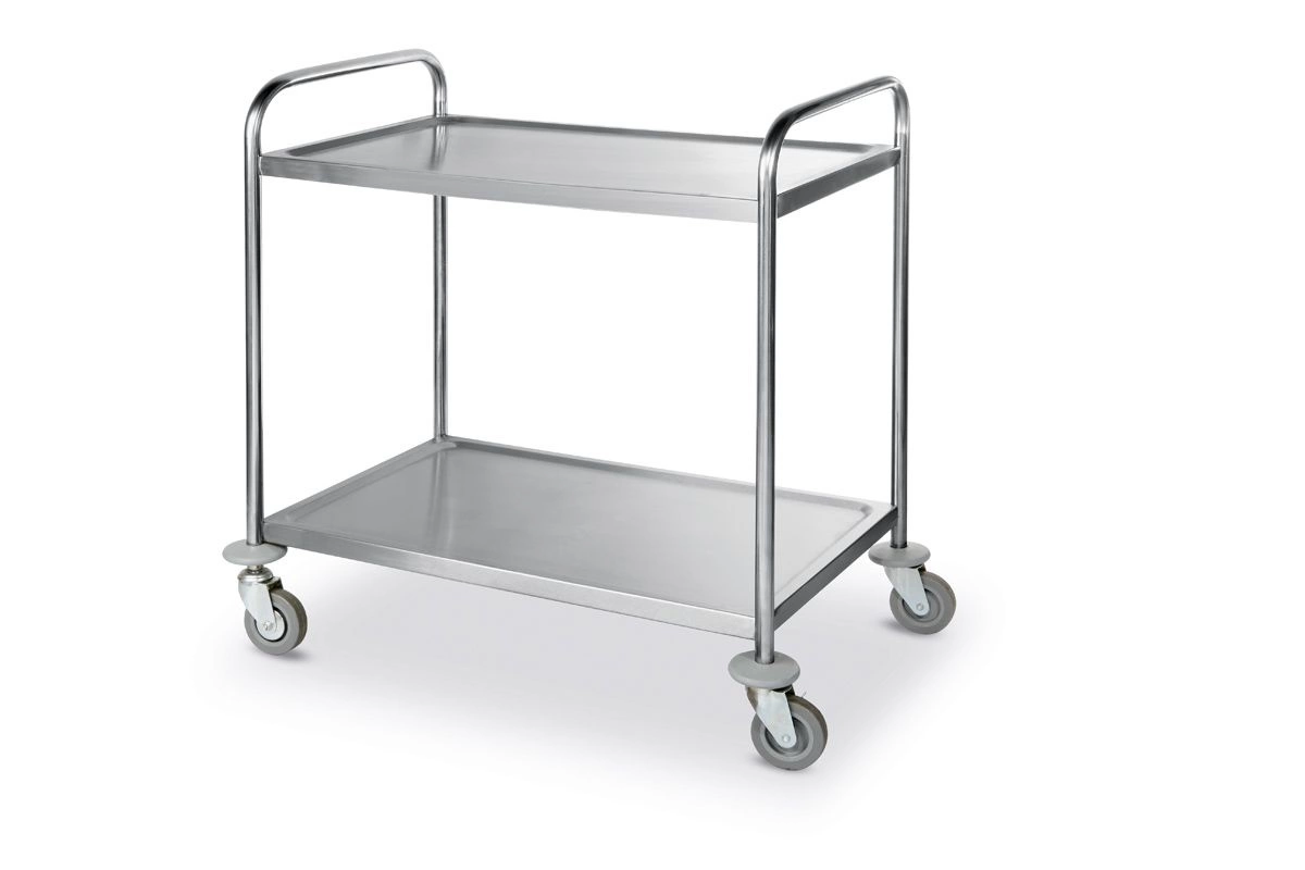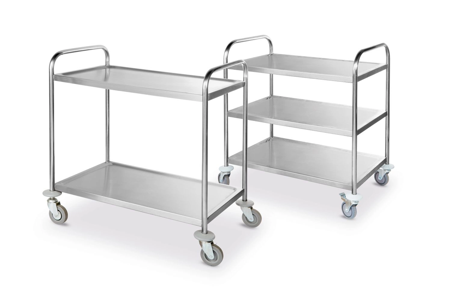 Čašník wózek 2-półkowy z nehrdzavejúcej ocele (chrómová oceľ półki) určený na vlastnú montáž. Nožičky sú na spodnej strane obložené materiálom pohlcujúcim zvuk (minimalizuje sa tak výrazný, nepríjemný zvuk pri náraze na kov). Maximálna nosnosť je 75 kg. Vzdialenosť medzi podložkami je 55 cm.