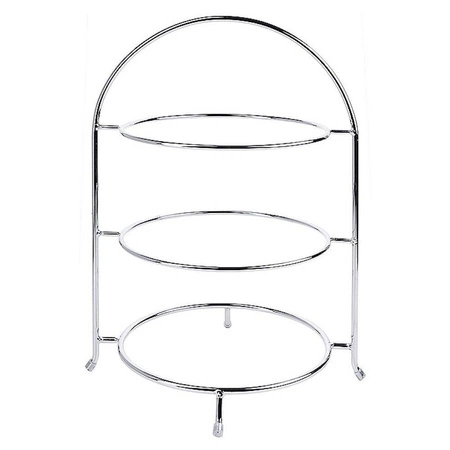 3-úrovňový stojan na taniere je praktické riešenie určené na prezentáciu tanierov v reštauráciách, bufetoch, hoteloch alebo počas cateringu. Vyznačuje sa pevnou konštrukciou z chrómovaného oceľového drôtu a možnosťou umiestnenia troch tanierov s priemerom od 27 do 31 cm. Perfektne poslúži pri servírovaní jedál alebo prezentácii pokrmov na rôznych typoch osláv.