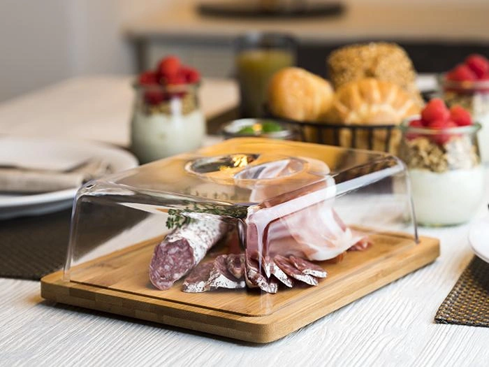 Tácka s krytom je ideálna na servírovanie pečiva, syrov, údenín, koláčov alebo ovocia na bufetových stoloch, v kaviarňach, reštauráciách alebo počas rodinných stretnutí. Vďaka priehľadnému krytu sú produkty vždy viditeľné a zároveň chránené pred vonkajšími vplyvmi.