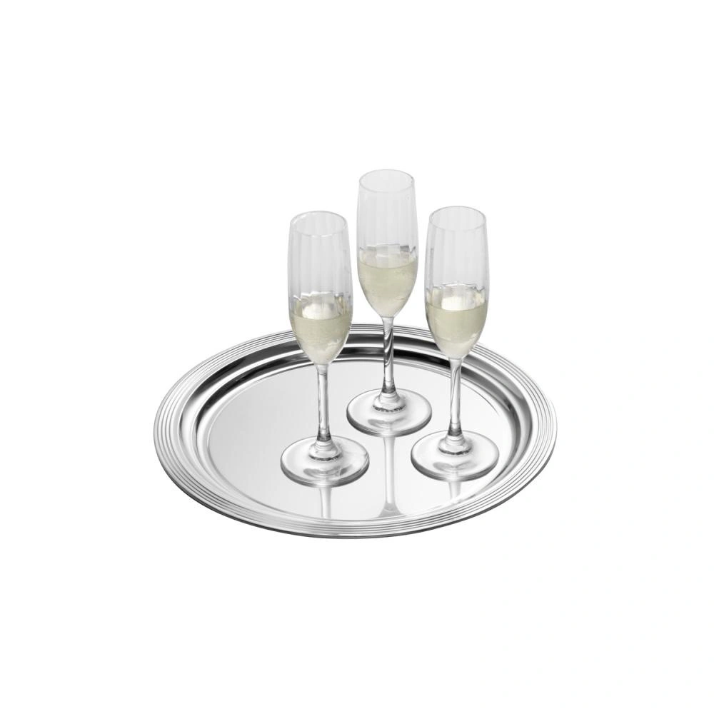 • Okrúhly tvar s valcovaným okrajom – uľahčuje prenášanie a vyzerá veľmi esteticky na banketovom stole, pridáva eleganciu každej udalosti.
