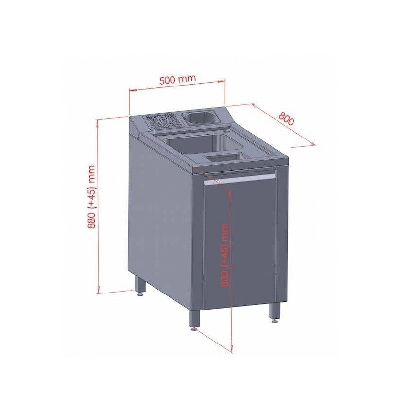 Barmanská stanica FORGAST FG15413 bola navrhnutá s dôrazom na ergonómiu a funkčnosť. Je vybavená hlbokou komorou drezu, ktorá je vhodná na umývanie veľkých pohárov alebo šejkrov, ako aj oplachovačom na poháre, ktorý umožňuje rýchle prepláchnutie riadu medzi prípravou nápojov. Súčasťou balenia je aj nádoba GN 1/9, ideálna na skladovanie citrusov, ľadu alebo iných koktailových prísad. Pracovný stôl s výrezom na odpad a PVC doskou na krájanie umožňuje rýchlu a bezpečnú prípravu prísad. Výsuvný kôš na odpad je praktické riešenie, ktoré uľahčuje udržiavanie čistoty bez nutnosti odchádzať od pracoviska.