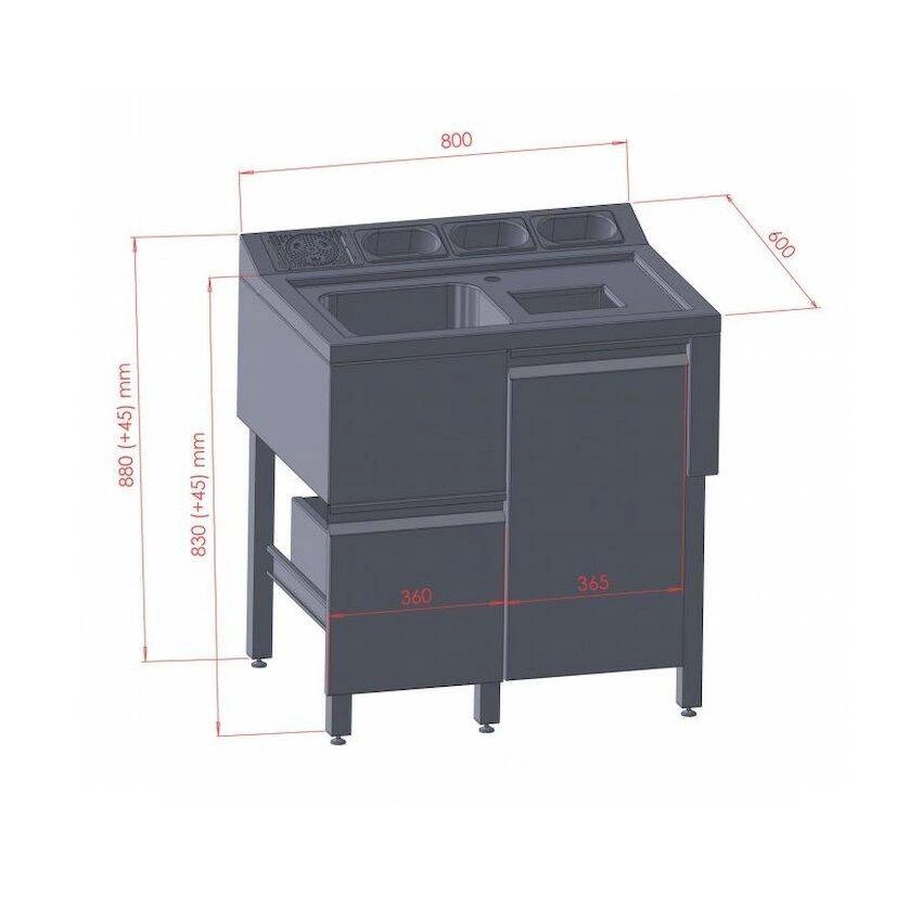 - Vonkajšie rozmery: 80x60x88 cm – Umožňuje optimálne využitie priestoru v bare a zároveň poskytuje pohodlný prístup ku všetkým častiam stanice.