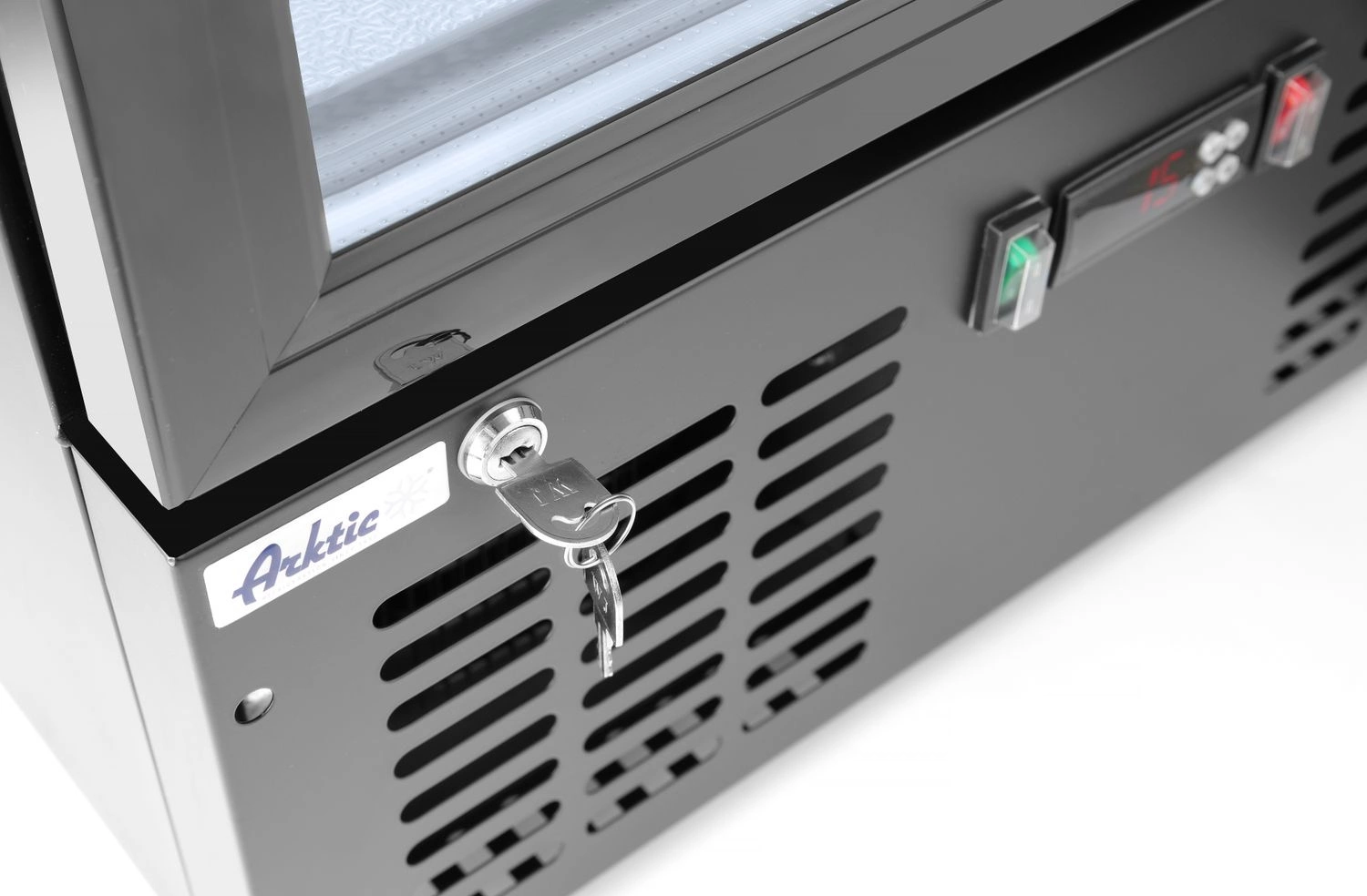 Barová chladnička ARKTIC 233924 bola navrhnutá s dôrazom na profesionálne použitie v gastronomických prevádzkach, baroch a hoteloch. Uplatní sa aj počas rôznych podujatí a v samoobslužných obchodoch. Zariadenie má päť chrómovaných políc, ktoré uľahčujú organizáciu nápojov a umožňujú jednoduchý prístup k jednotlivým produktom. Dvere z tvrdeného skla umožňujú pohodlnú prezentáciu obsahu a zámok zaručuje bezpečnosť uskladnených nápojov. LED osvetlenie zvyšuje expozičné vlastnosti a elektronický termostat umožňuje presné nastavenie teploty.