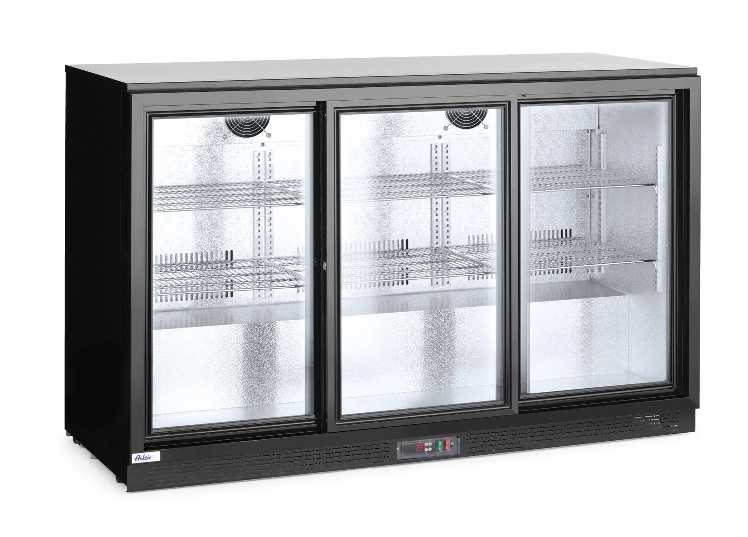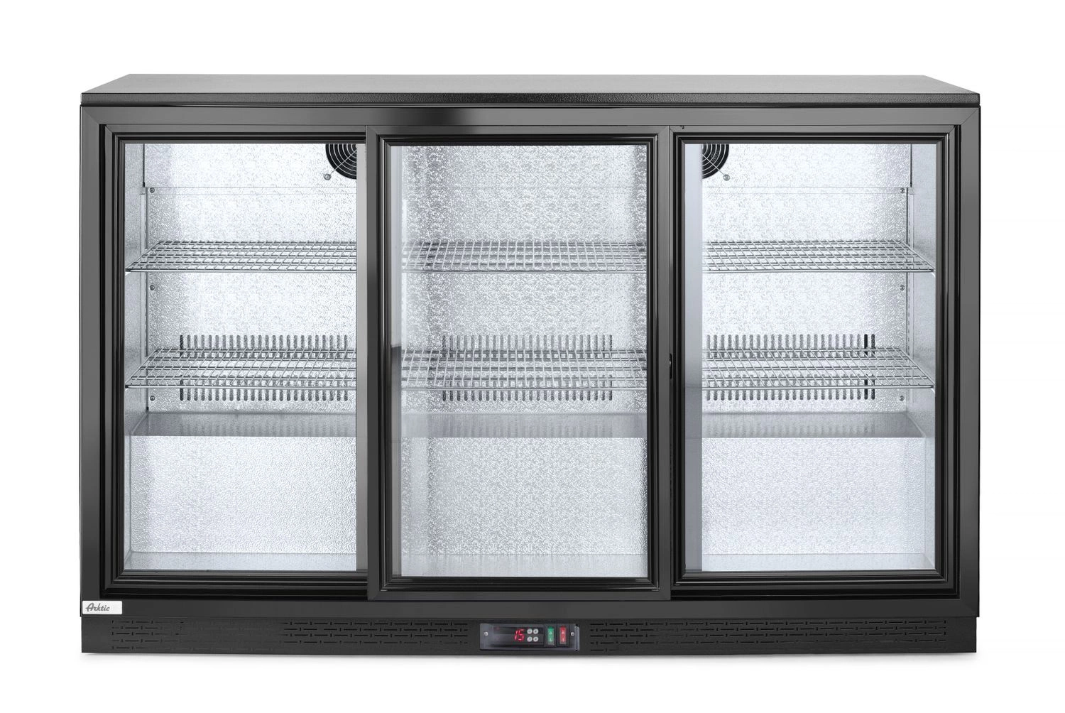 3-dverová barová chladnička ARKTIC je ideálna všade tam, kde záleží na prezentácii a rýchlom prístupe k chladeným nápojom – v baroch, kluboch, reštauráciách, hoteloch či gastronomických prevádzkach. Tri posuvné dvere z tvrdeného skla umožňujú pohodlné vyberanie produktov, pričom zákazníci môžu vidieť ponuku bez otvorenia zariadenia. Vnútro z lisovaného hliníka zaručuje jednoduché čistenie a hygienu, pričom šesť chrómovaných políc umožňuje flexibilne organizovať priestor.