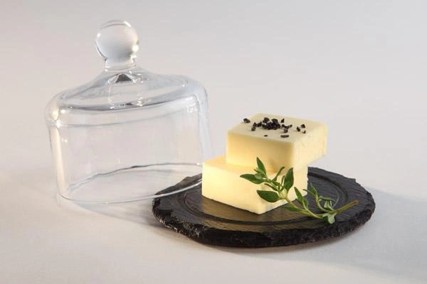 Doska je vyrobená z prírodnej bridlice, ktorá sa vyznačuje vysokou odolnosťou voči poškriabaniu a ľahkou údržbou. Sklenený poklop s pohodlným úchytom umožňuje jednoduché zdvíhanie a estetickú prezentáciu servírovaných pokrmov. Celok pôsobí minimalisticky a moderne, zdôrazňuje kvality servírovaných jedál.