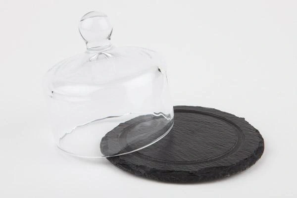 Doska z prírodnej bridlice so skleneným poklopom, MORRA, priemer 10,5 cm APS 984