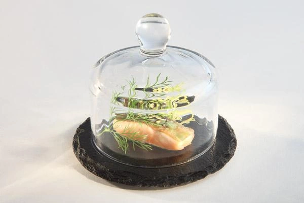 Elegantná doska z prírodnej bridlice MORRA s priehľadným skleneným poklopom je praktickým a štýlovým prvkom vybavenia kuchyne, reštaurácie alebo bufetu. Produkt sa vyznačuje moderným dizajnom, odolnosťou a jedinečnou kombináciou prírodného kameňa a skla, ktorá zdôrazňuje vynikajúci spôsob servírovania jedál, predjedál alebo dezertov. Ideálna na servírovanie pokrmov vyžadujúcich efektnú prezentáciu a ochranu pred vysychaním alebo znečistením.