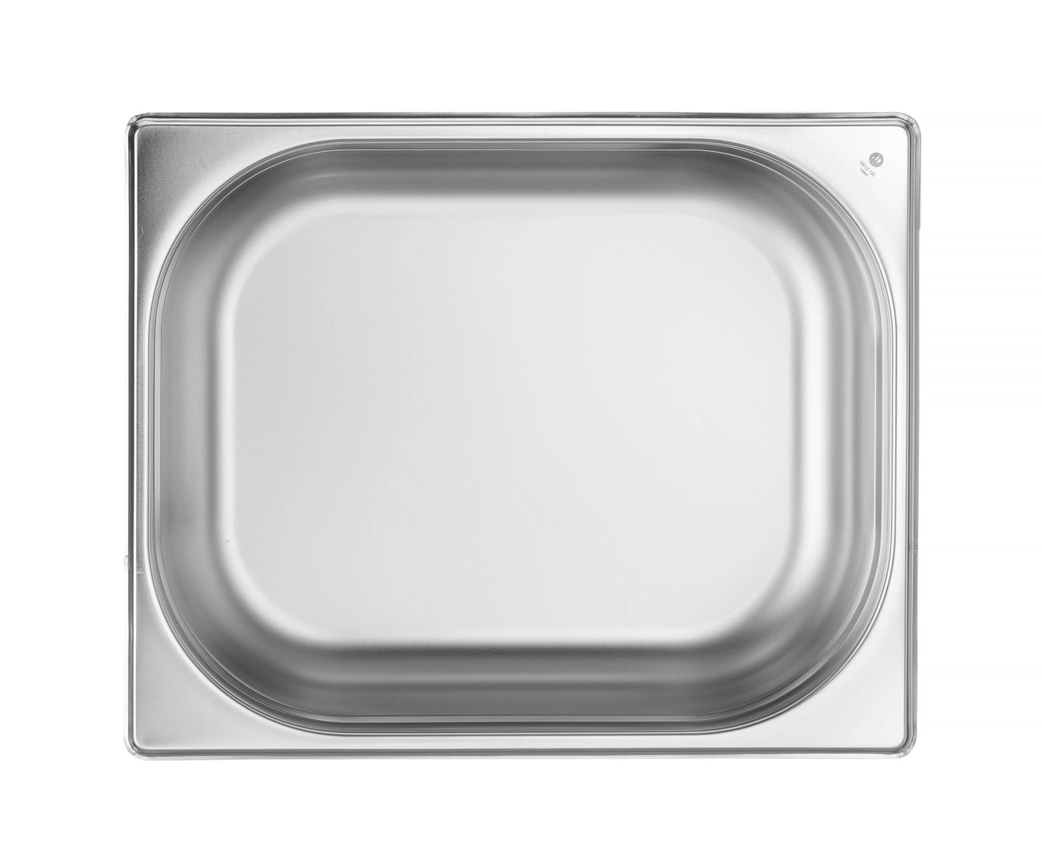 GN 1/2 kontajner s hĺbkou 10 cm z nerezovej ocele BUDGET LINE. Nádoba sa odporúča na všetky aplikácie pri teplotách od -40 do 300 °C. Vyrobené z nehrdzavejúcej ocele. Robustná konštrukcia. Hladké hrany.
