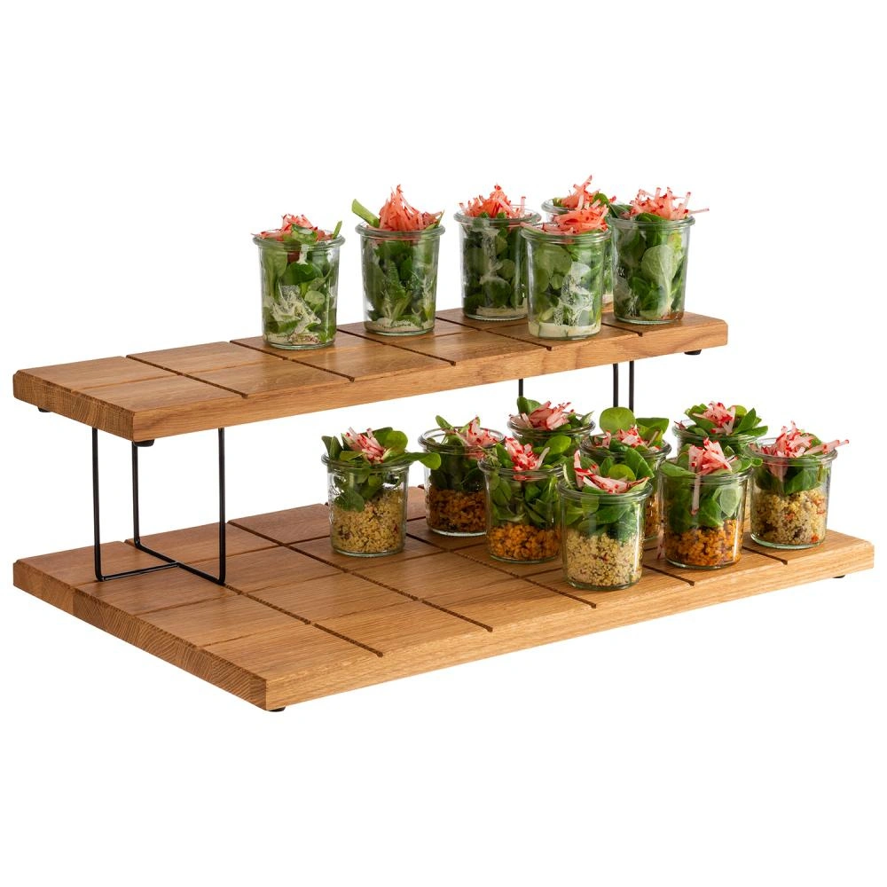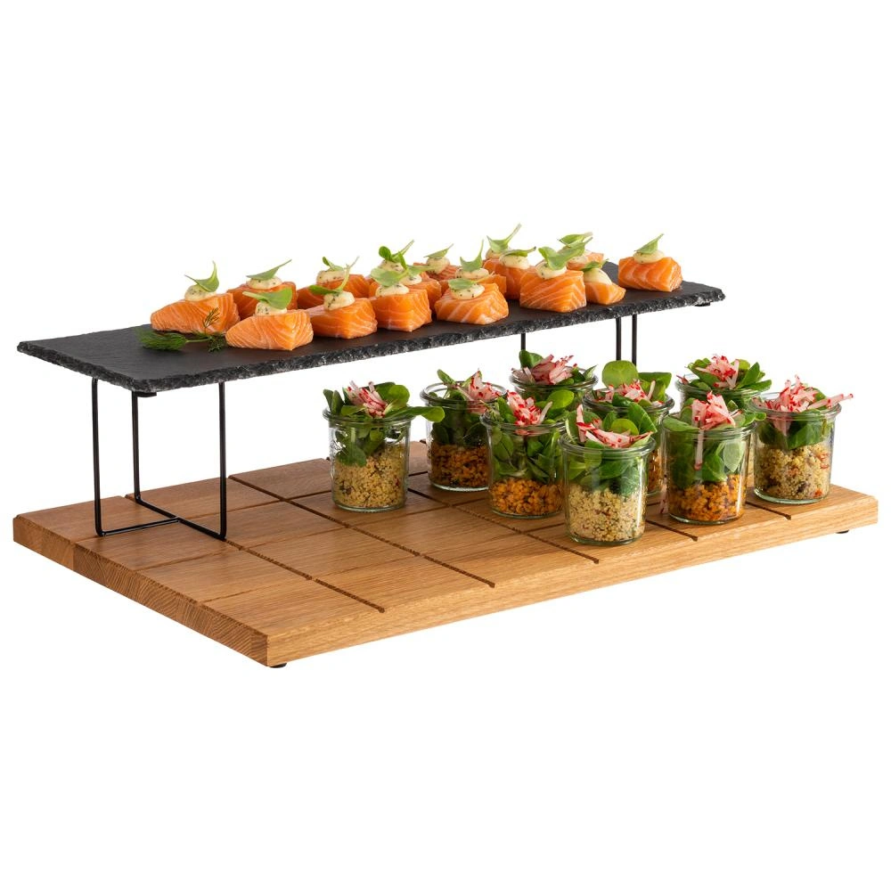 Bufetový stojan SQUARE sa osvedčí pri organizovaní hotelových raňajok, banketov alebo osláv, kde záleží na efektnom prezentovaní jedál. Umožňuje viacúrovňové usporiadanie riadu a efektívne využitie priestoru na stole. Vďaka protišmykovej vrstve je bezpečný aj pri intenzívnom používaní.