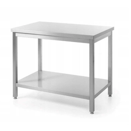 Centrálne pracovisko s pólavičkou. Vyrobené z nehrdzavejúcej ocele AISI 430, skrutková konštrukcia. Nastaviteľné nohy zo štvorcových profilov. Vrchná časť vystužená laminovanou (vodeodolnou) drevotrieskou.