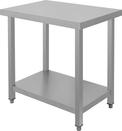 Skrutkovaný centrálny pracovný stôl YATO YG-08990 s policou s rozmermi 80x50x85 cm je praktickým a odolným riešením pre profesionálne kuchyne v oblasti gastronómie. Je vyrobený z leštenej nehrdzavejúcej ocele SS201 a je odolný voči organickým kyselinám a čistiacim prostriedkom, takže sa ľahko udržiava v každodennej čistote. Robustná konštrukcia z plechu s hrúbkou 0,8 mm, vystužená spodnou doskou z laminovaného dreva s hrúbkou 20 mm, zaručuje nosnosť stolovej dosky až 150 kg a účinné tlmenie zvuku.