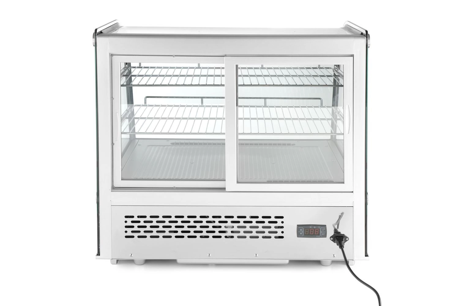 Chladiaca vitrína HENDI 233702 bola navrhnutá s ohľadom na profesionálnych používateľov, ktorí očakávajú spoľahlivosť a atraktívnu prezentáciu tovaru. Vďaka kompaktným rozmerom je ideálna ako nadstavba na pult v gastronomických prevádzkach, potravinách či cukrárňach. Vnútro zariadenia je vybavené dvoma nastaviteľnými policami, ktoré umožňujú flexibilné rozmiestnenie produktov rôznych rozmerov. Posuvné zadné dvere umožňujú rýchly prístup k vystaveným produktom a dvojité predné sklo účinne izoluje chladený interiér od okolia.