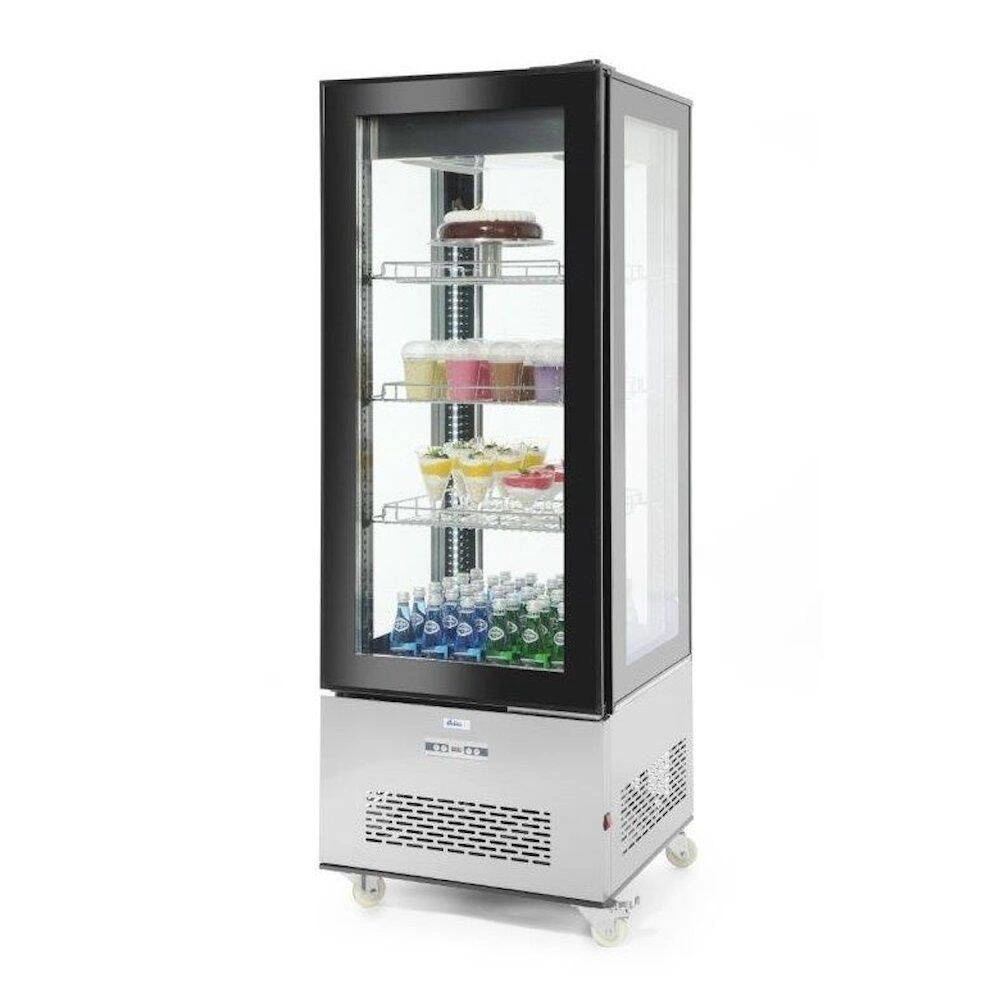Chladiaca vitrína HENDI 233283 s objemom 550 litrov je profesionálne chladiace zariadenie určené na prezentáciu a skladovanie potravín, nápojov a ďalších produktov vyžadujúcich kontrolovanú teplotu. Vyznačuje sa veľkou kapacitou, moderným LED osvetlením a dynamickým systémom chladenia, ktorý zabezpečuje rovnomerné rozloženie teploty v celej komore. Ideálne sa hodí do potravinových obchodov, reštaurácií, cukrární alebo čerpacích staníc.
