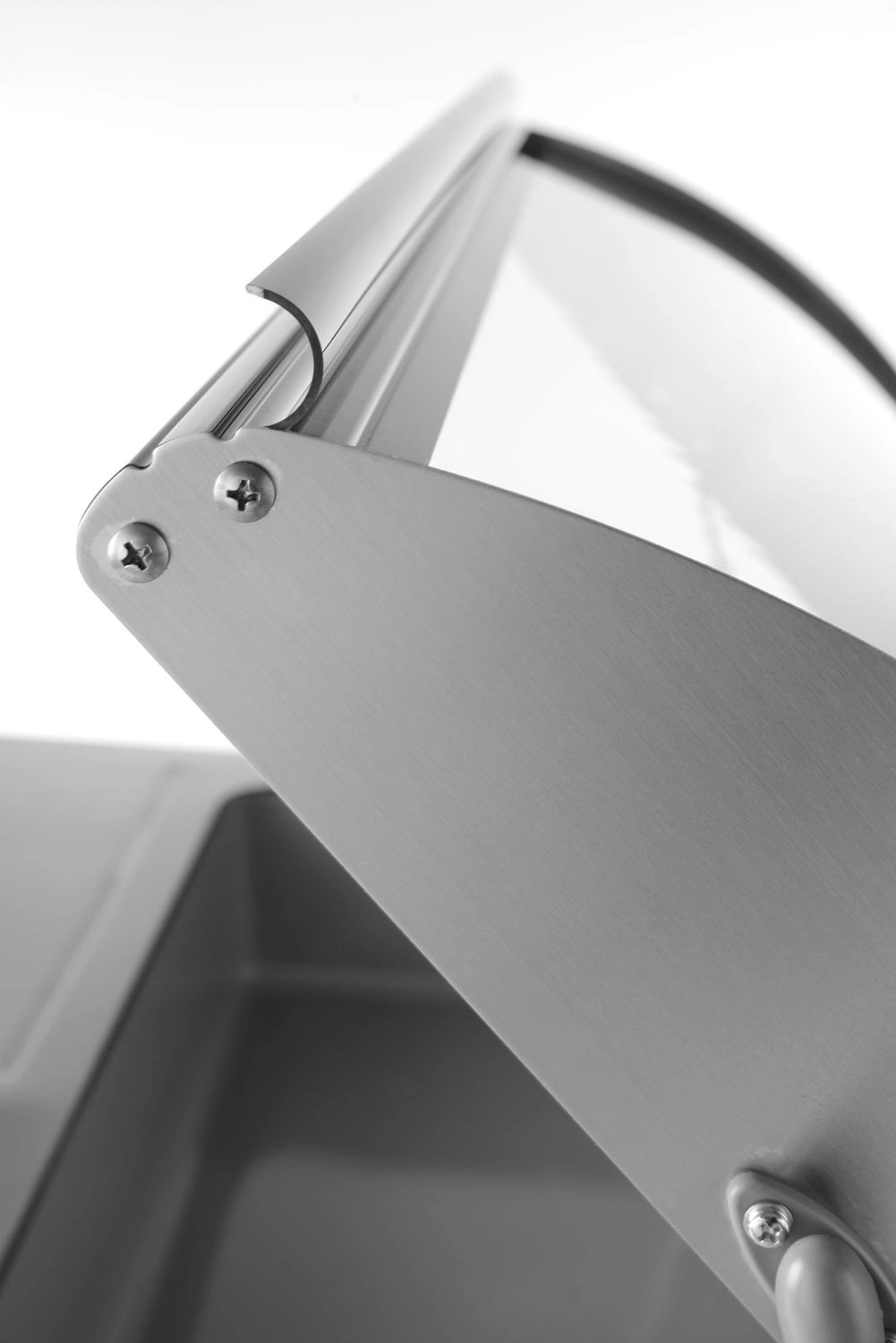 - Kryt z nehrdzavejúcej ocele – zaručuje odolnosť, hygienu a jednoduché čistenie aj pri intenzívnom používaní.