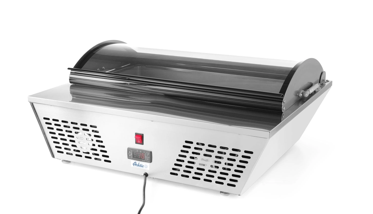 Chladiaca vitrína HENDI je navrhnutá na vystavovanie a skladovanie potravín, ako sú šaláty, prílohy, čerstvé suroviny alebo dezerty. Vďaka možnosti použitia GN 1/6 alebo GN 1/3 nádob s maximálnou hĺbkou 10 cm (nie sú súčasťou balenia) môže používateľ ľubovoľne organizovať vnútorný priestor zariadenia. Presklené, vypuklé veko nielen chráni jedlo pred vonkajšími vplyvmi, ale aj zvýrazňuje jeho vizuálne prednosti. Elektronický termostat umožňuje presné nastavenie teploty a automatické odmrazovanie zvyšuje pohodlie pri používaní.