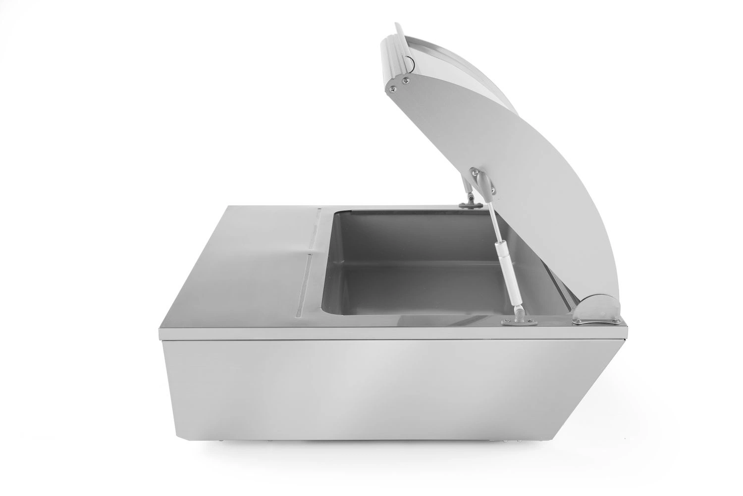 - Presklené, vypuklé veko – umožňuje atraktívne vystavenie produktov a rýchly prístup vďaka jednoduchému otváraniu.