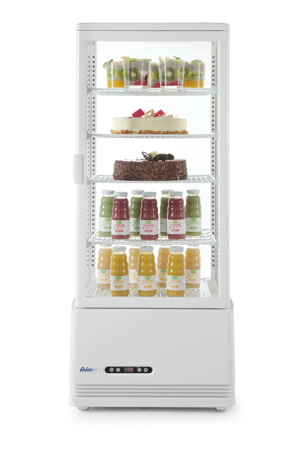 - Kompaktná konštrukcia – malé rozmery umožňujú umiestniť vitrínu aj v obmedzených priestoroch zázemia alebo predajnej plochy.