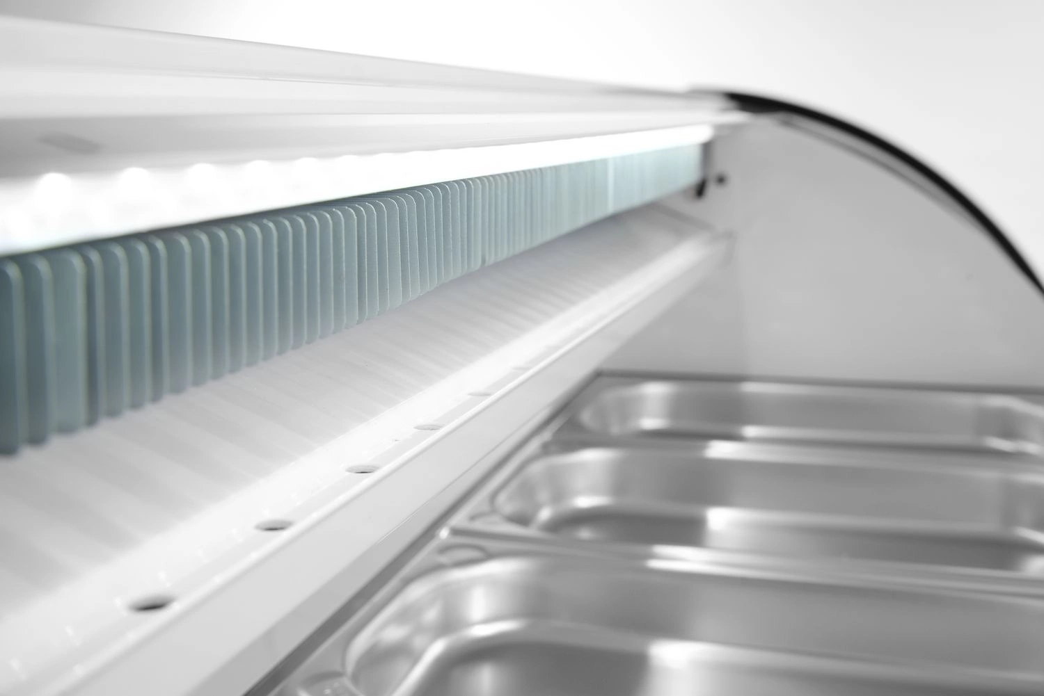 • LED osvetlenie – umiestnené na vrchu komory, LED osvetlenie zvýrazňuje estetické prednosti vystavených produktov a zároveň je energeticky úsporné.