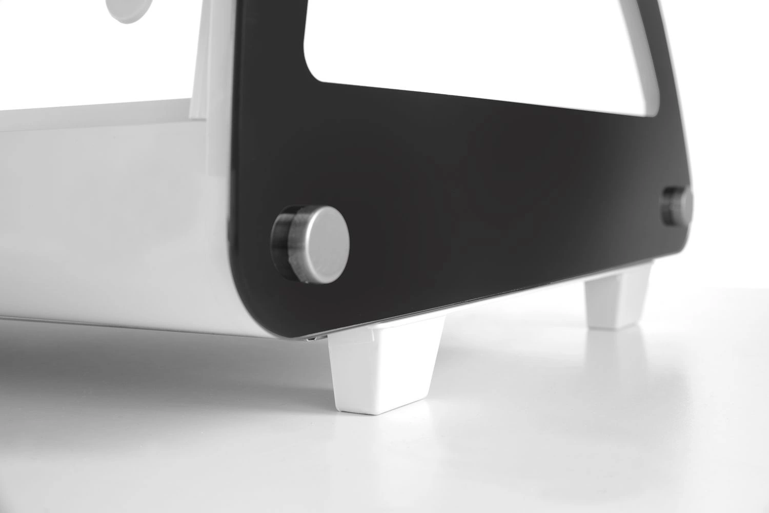 • Moderná konštrukcia – vyhotovenie z nerezovej ocele lakovanej na bielo zaručuje dlhú životnosť, jednoduché čistenie a elegantný vzhľad, ktorý skvelo zapadne do každého interiéru.
