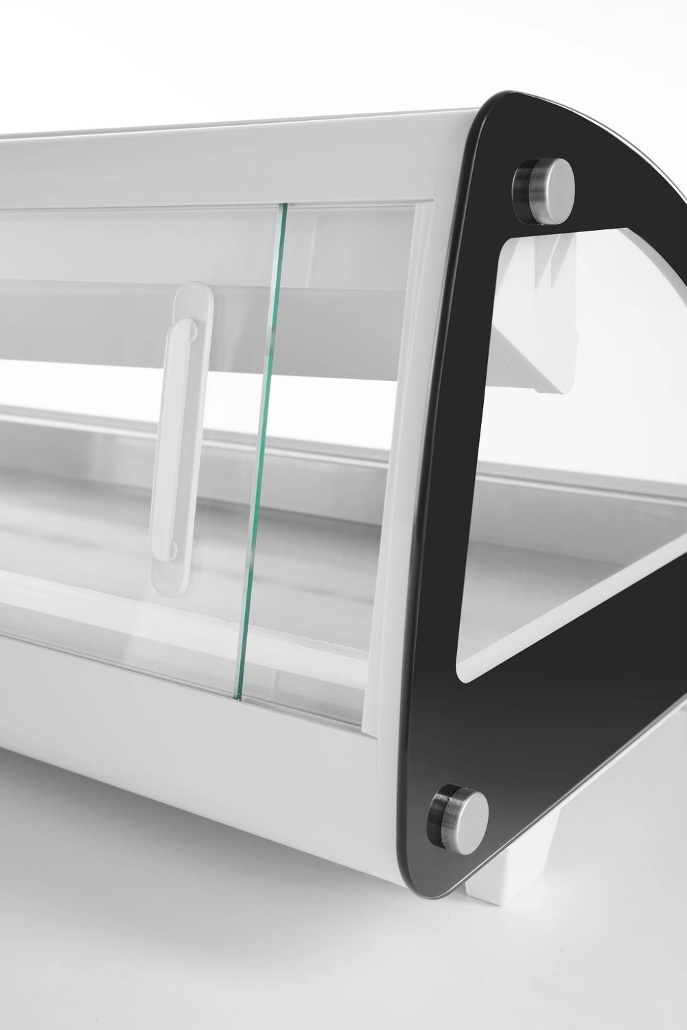 • Dvojité, ohýbané čelné sklo – bezpečné, ohýbané sklo efektívne chráni produkty a umožňuje ich atraktívnu prezentáciu aj jednoduchý prístup do vnútra vitríny.
