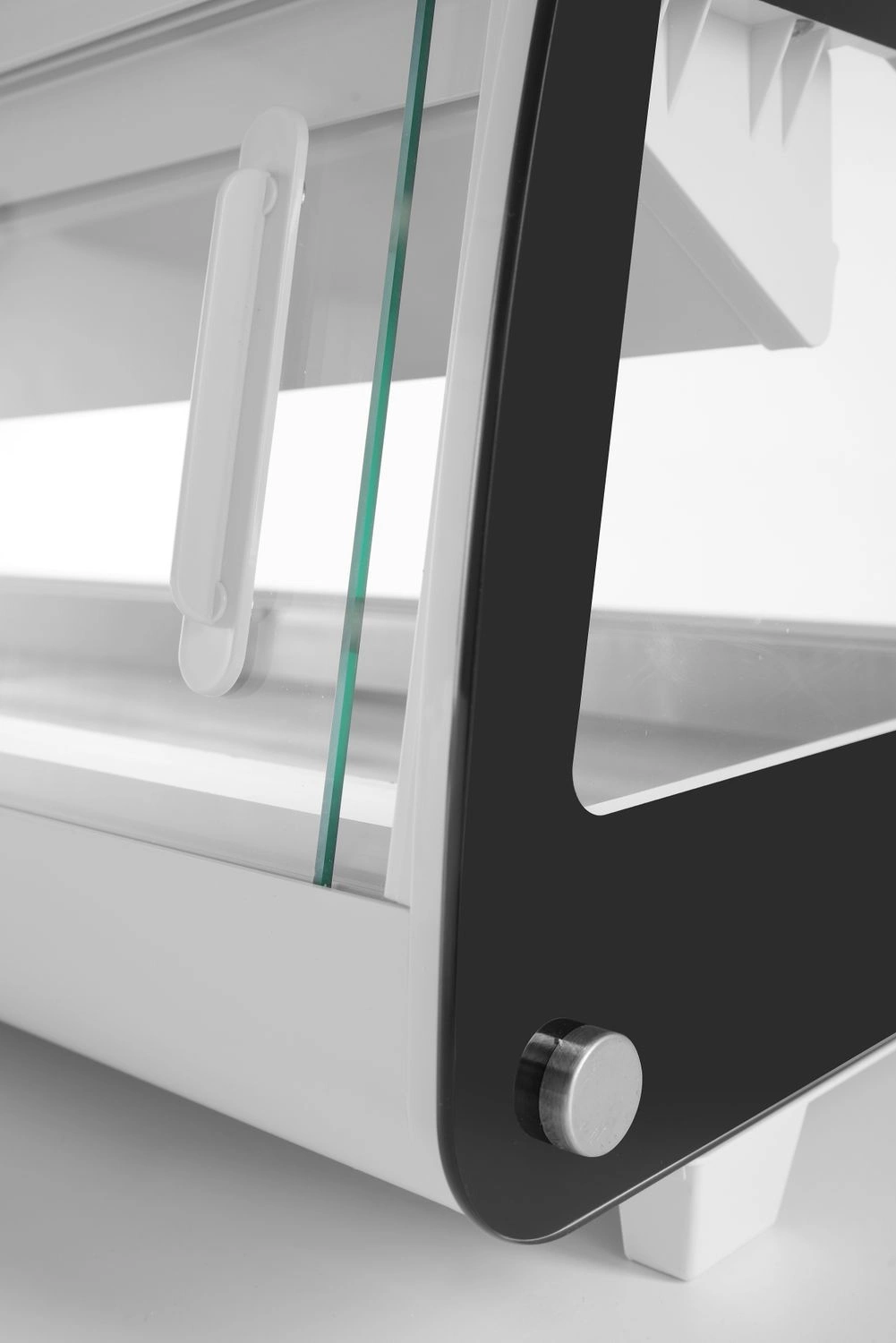 Chladiaca vitrína na sushi S objemom 63 l. Konštrukcia z bielo lakovanej nehrdzavejúcej ocele. Dvojitoóohnuté a bezpečnostné predné okno. Prístup do priestoru cez zadné dvojdielne posuvné dvere alebo predné ohýbané sklenené okno. LED osvetlenie na gór priehradky.