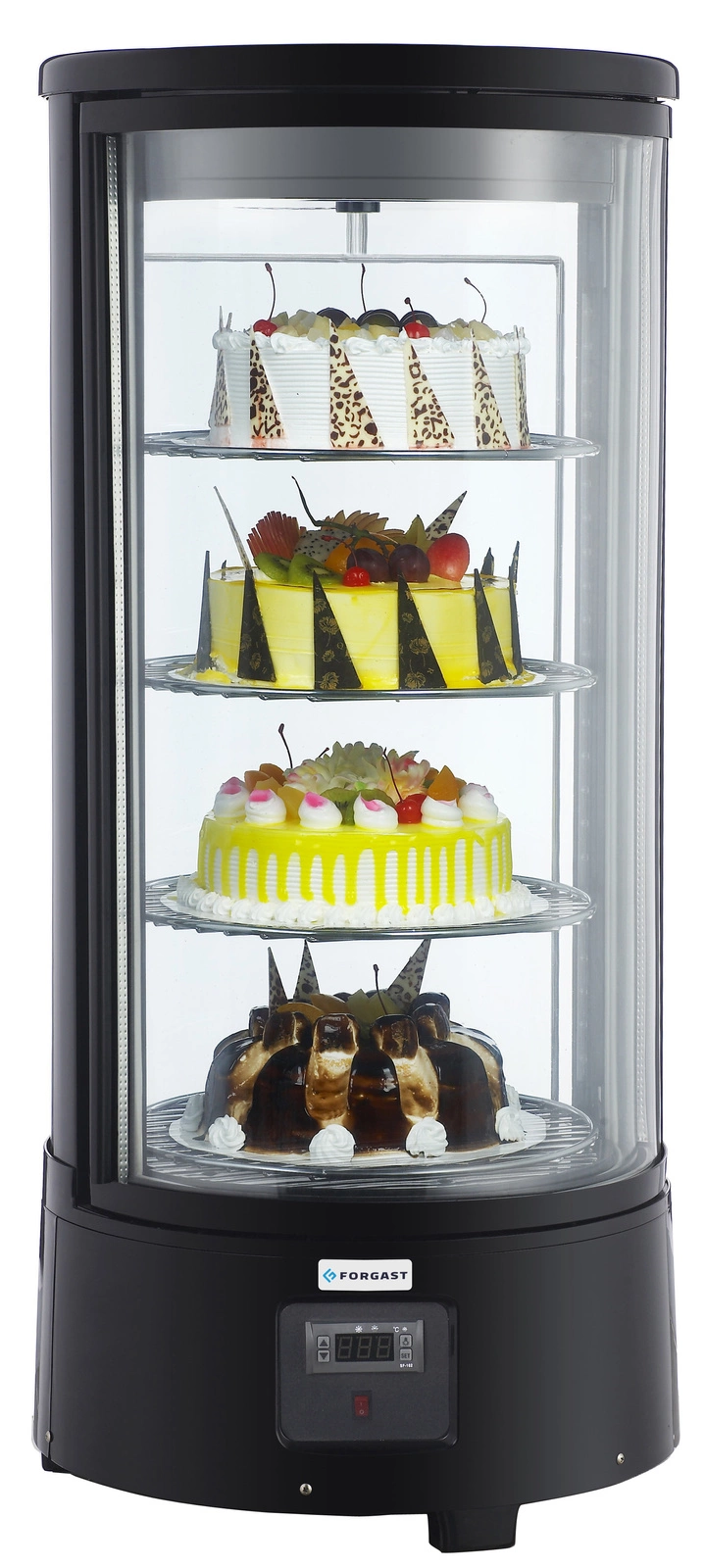 Chladiaca otočná vitrína 72 l FORGAST FG07717 je moderné zariadenie určené na efektívnu prezentáciu a uchovávanie cukrárskych výrobkov a dezertov. Jej charakteristickým znakom je otočný mechanizmus políc a kompaktná kapacita 72 litrov, vďaka čomu je ideálna do kaviarní, cukrární a reštaurácií, kde záleží nielen na estetike, ale aj na čerstvosti produktov.