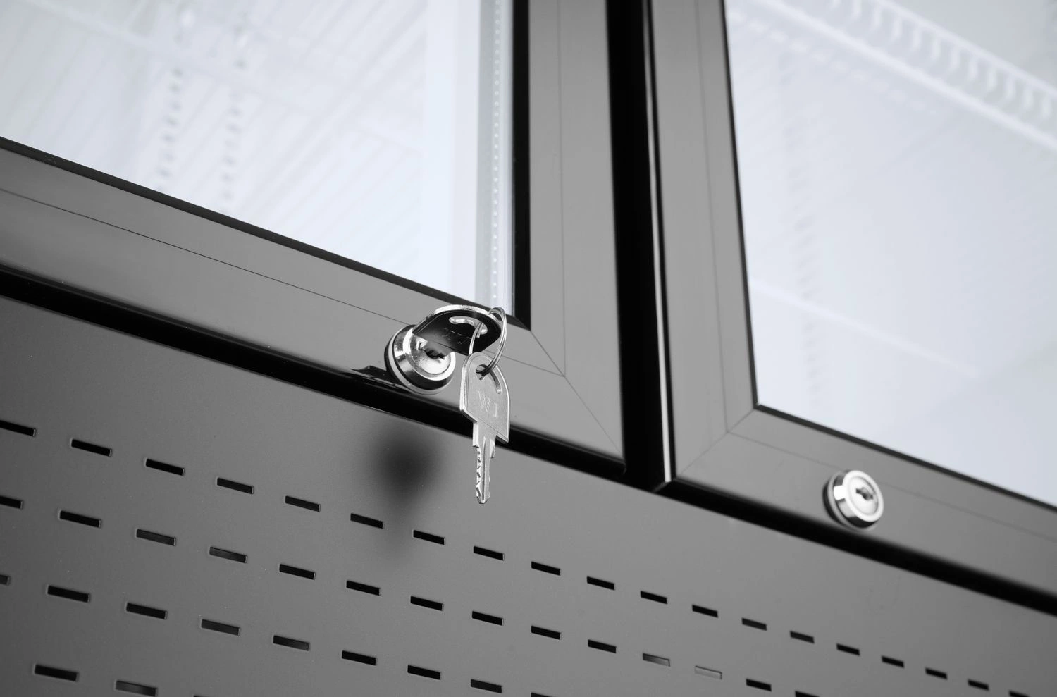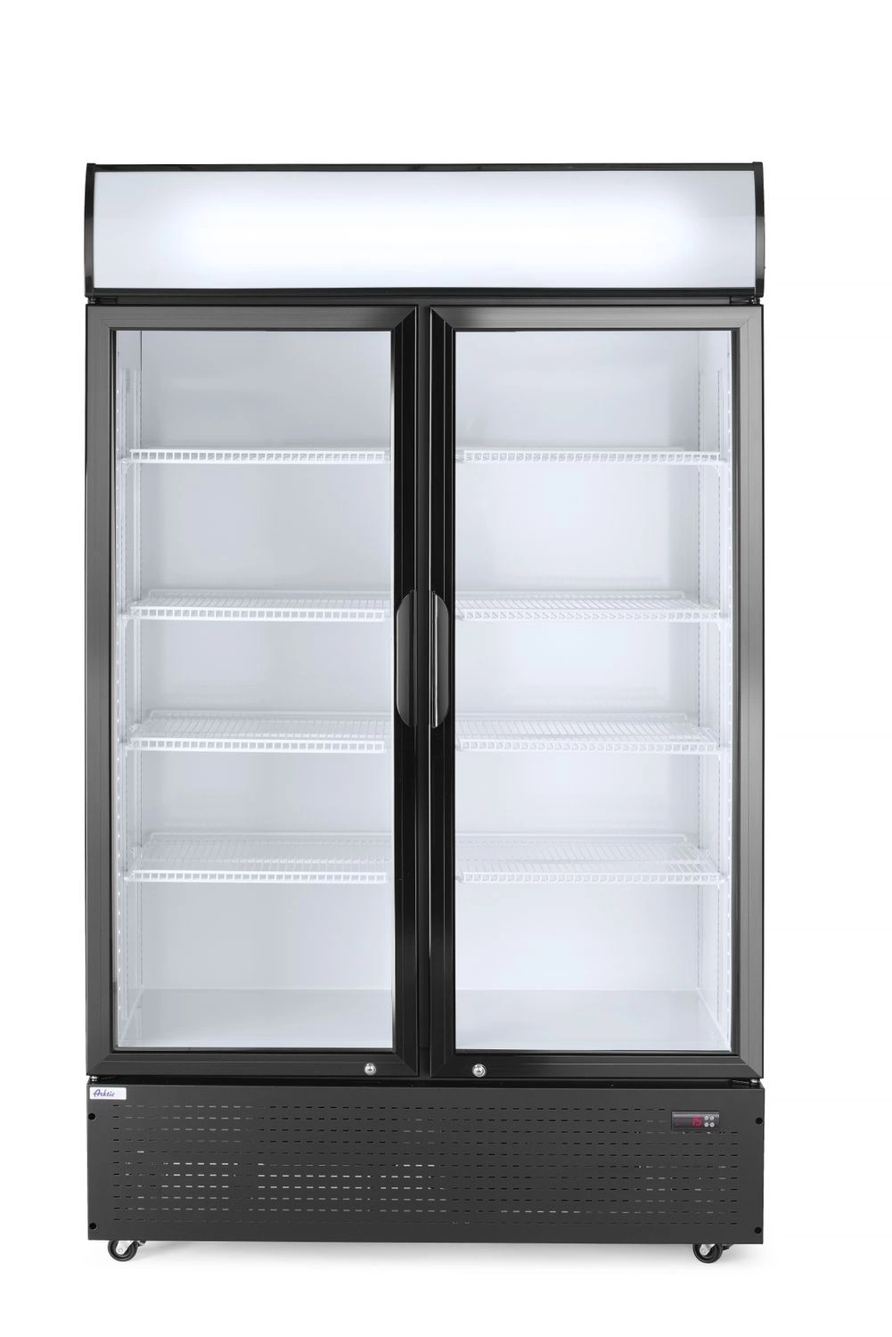 - Dvojkrídlové dvere s trojitým sklom – zabezpečujú vynikajúcu izoláciu a viditeľnosť produktov, pričom jedno zo skiel je tvrdené pre väčšiu bezpečnosť.