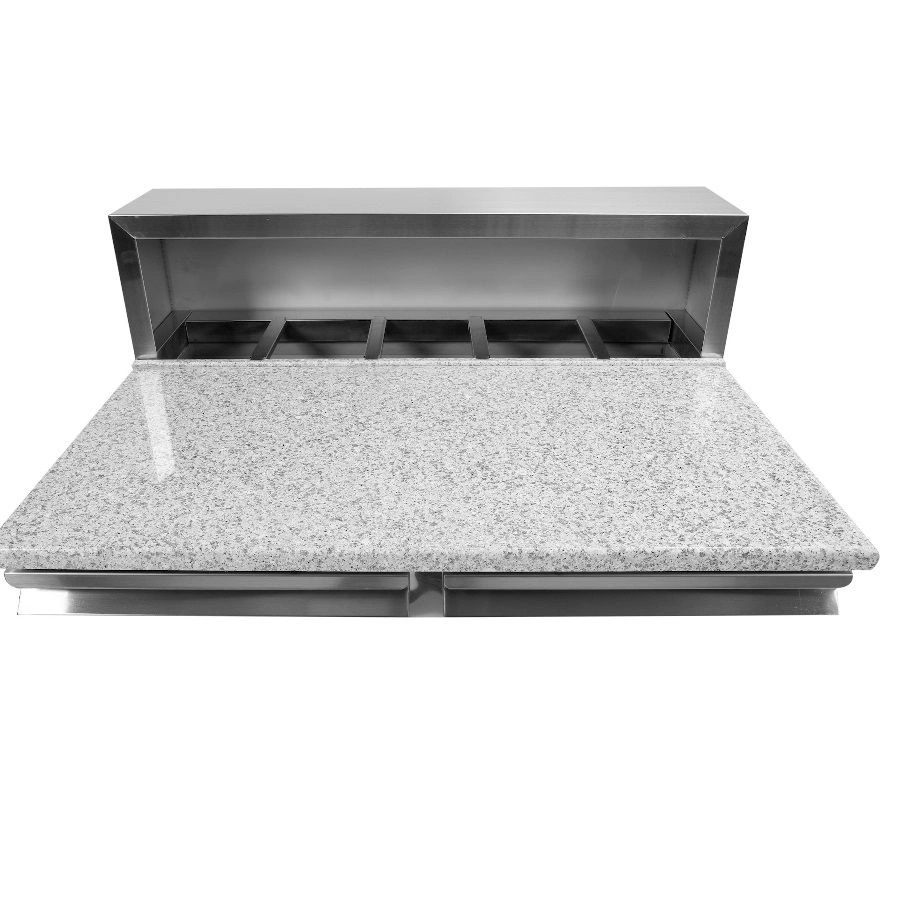 • Chladiaca nadstavba na GN nádoby – Nadstavba pojme 5 GN 1/6 nádob s hĺbkou do 15 cm, čo umožňuje pohodlné skladovanie a rýchly prístup k rôznym surovinám. Toto riešenie je mimoriadne užitočné pri intenzívnej práci v kuchyni.