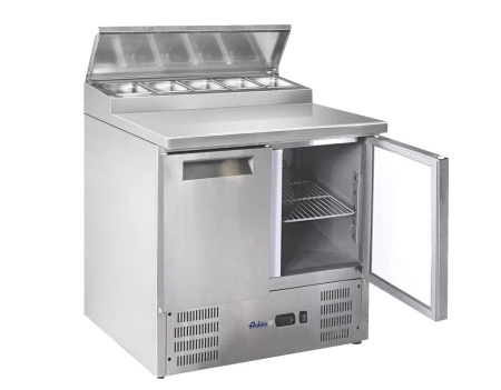 Zariadenie má dvojdverovú chladiacu komoru s ventilátorom, ktorý sa stará o stálu teplotu a rovnomerné rozloženie chladenia. Pracovná doska z nerezovej ocele je odolná voči mechanickému poškodeniu a ľahko sa čistí. Nadstavba s miestom na nádoby umožňuje pohodlnú prípravu a výdaj jedál. Všetky konštrukčné prvky sú navrhnuté s ohľadom na intenzívne využitie v gastronómii.