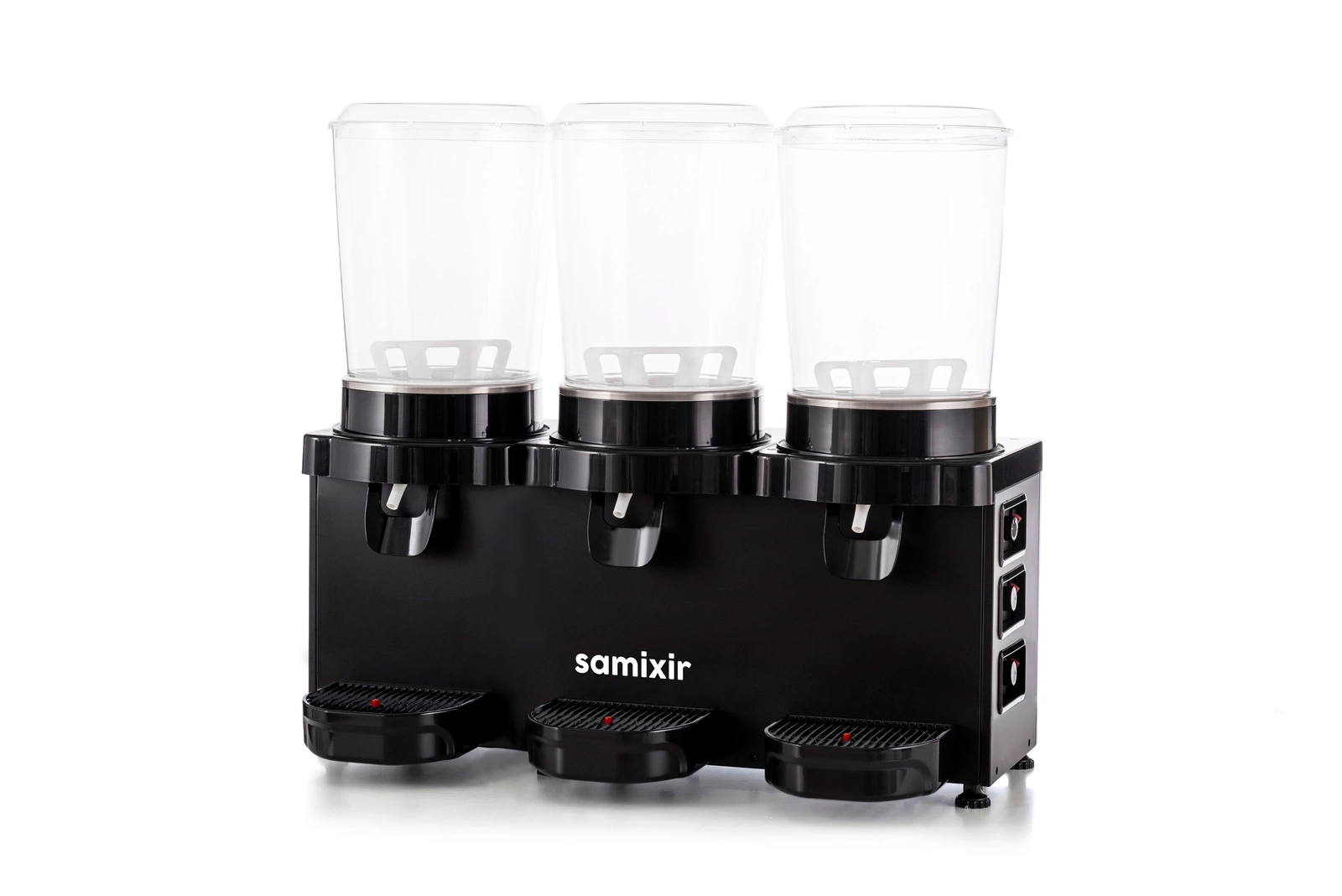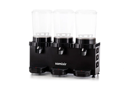 Chladič nápojov, dávkovač nápojov 3 x 10 l Panoramic SAMIXIR MMM30.AB_R290 je investíciou do pohodlia, efektivity a rozmanitosti ponuky. Umožňuje súčasné podávanie troch rôznych nápojov, zaručuje vysokú kvalitu chladenia a jednoduchosť obsluhy, ako aj ohľaduplnosť k životnému prostrediu vďaka použitiu ekologického chladiva. Pevná konštrukcia, jednoduché čistenie a moderný miešací systém spôsobujú, že zariadenie splní očakávania aj tých najnáročnejších používateľov v gastronomickom priemysle.