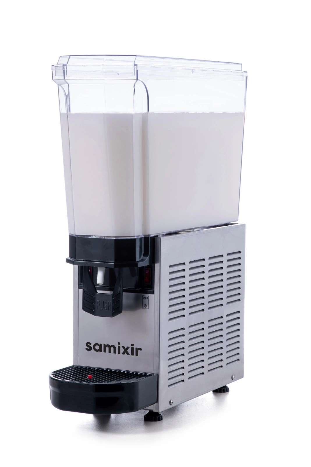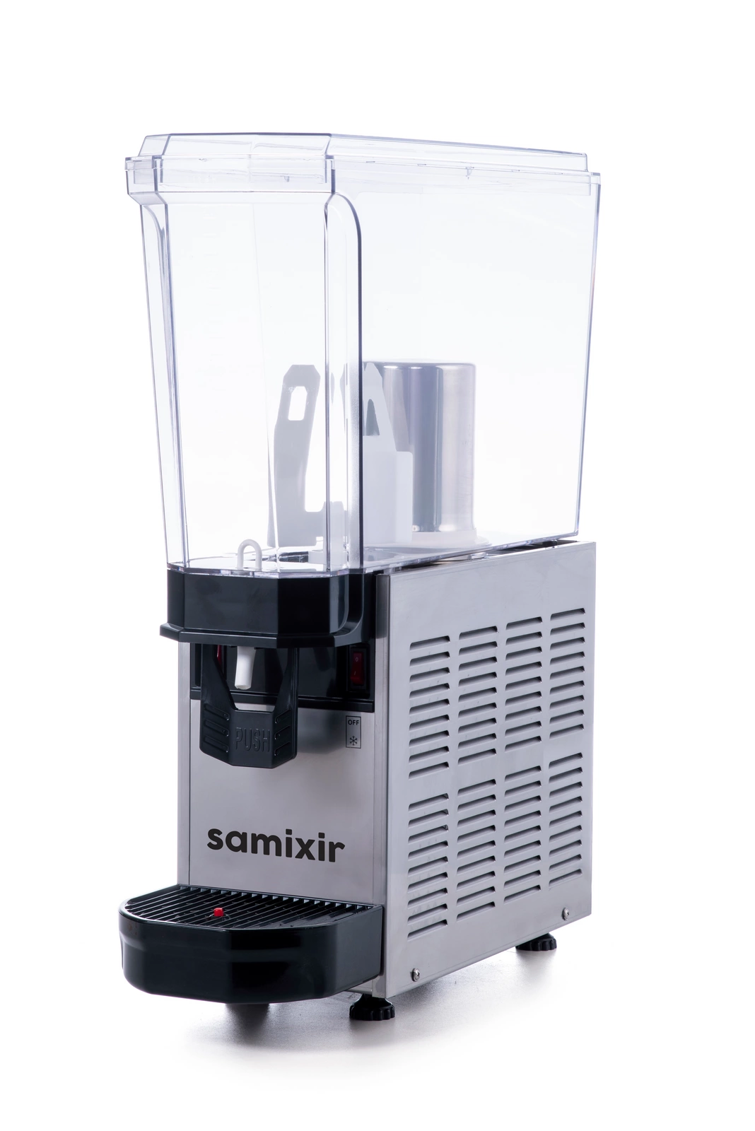 Chladič na nápoje, dávkovač nápojov 20 l SAMIXIR 20.MI je profesionálne gastronomické zariadenie určené na rýchle chladenie a pohodlné podávanie rôznych druhov nápojov. Vybavený moderným miešacím systémom a priestrannou nádobou, skvele sa hodí do barov, reštaurácií aj na vonkajšie podujatia. Obzvlášť odporúčaný je na džúsy s dužinou, ayran, ľadovú kávu a nápoje s prísadami, kde je dôležité zachovať jednotnú konzistenciu a čerstvosť.
