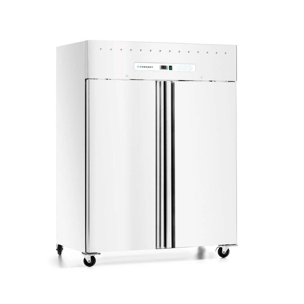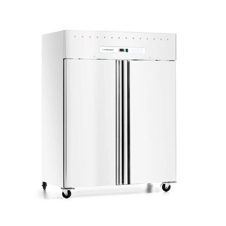 Dvojdverová chladiaca skriňa GN 2/1 1476 l biela lakovaná FORGAST FG07214 je profesionálne chladiace zariadenie určené na skladovanie veľkého množstva potravín v gastronomických podmienkach. Vyznačuje sa priestrannou komorou, pevnou konštrukciou z lakovaného plechu a vnútrom z nehrdzavejúcej ocele. Skvele sa hodí do reštaurácií, hotelov, jedální či cateringových spoločností, kde je dôležitá spoľahlivosť a jednoduchá údržba hygieny.