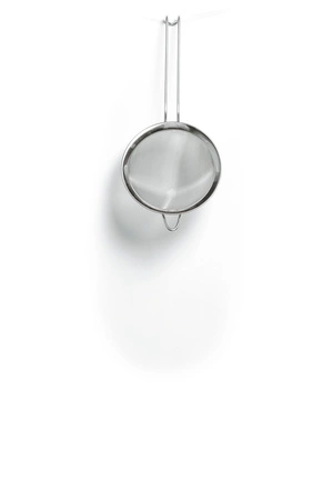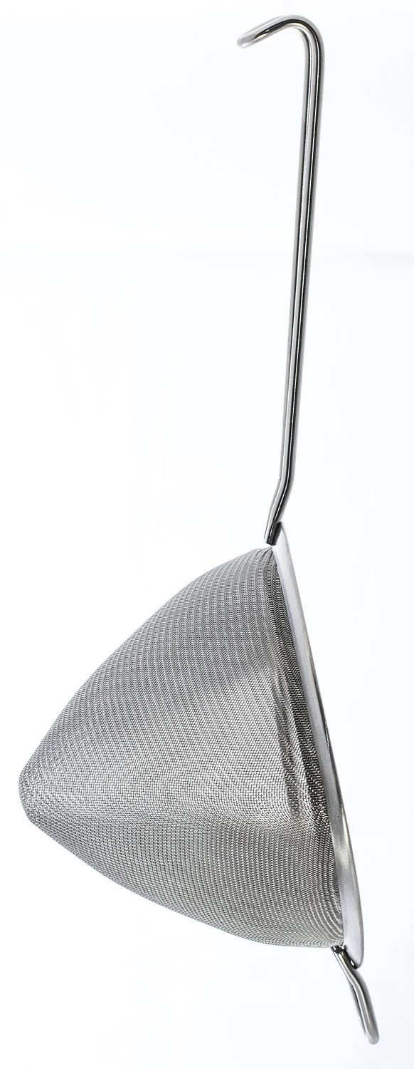 Čínske sito s prídavnou rukoväťou, z nehrdzavejúcej ocele, perforovaný, kónický. Priemer 18 cm.