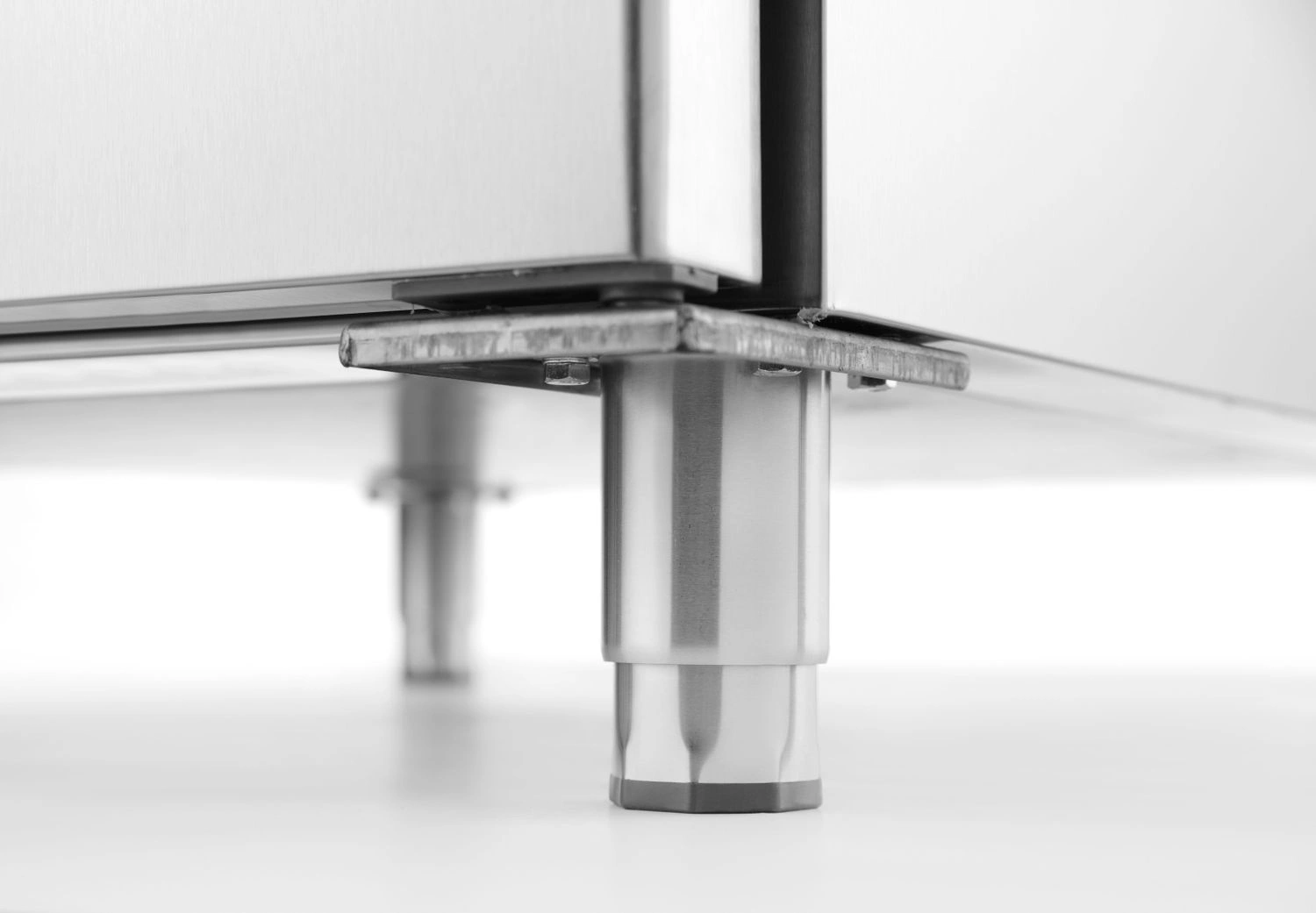 Pevná konštrukcia z nerezovej ocele AISI 304 zaručuje odolnosť voči intenzívnemu používaniu a jednoduchú údržbu čistoty zariadenia. Dvere sú vybavené automatickým zatváracím systémom, ktorý minimalizuje energetické straty a chráni produkty pred nežiaducim nárastom teploty. Digitálny ovládací panel umožňuje intuitívne nastavenie prevádzkových parametrov a statický chladiaci systém zabezpečuje rovnomerné rozloženie chladu. Nastaviteľný počet úrovní vodidiel umožňuje prispôsobiť priestor rôznym typom políc a tácok.